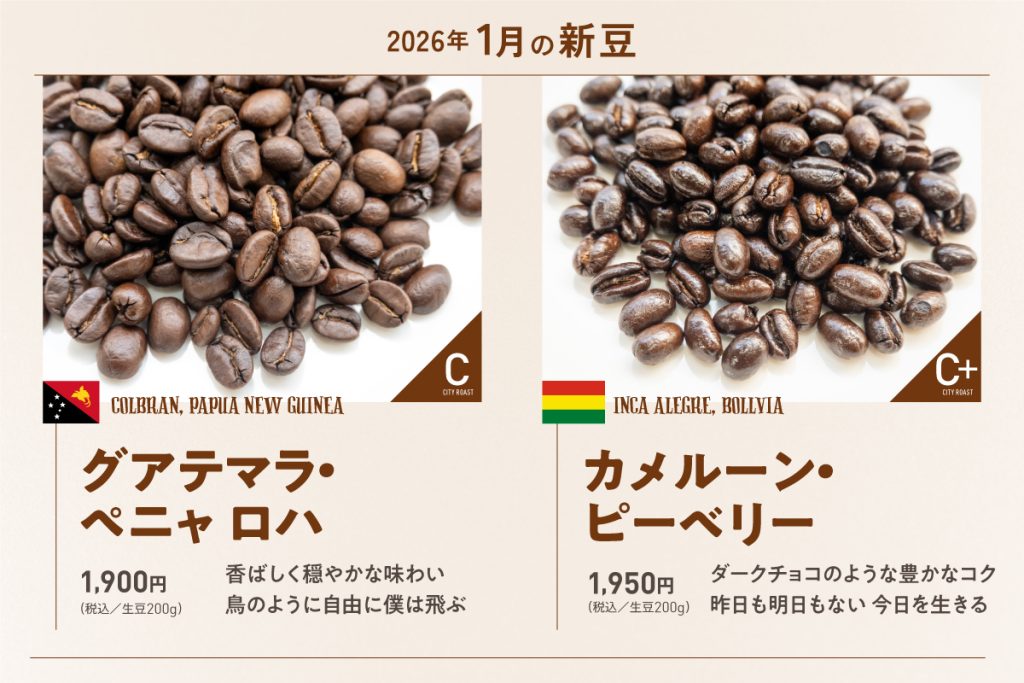 4種のハウスブレンドと約25種類のストレートコーヒーを取り扱っています。さまざまな地域のコーヒー豆の個性的な味わいをお楽しみください。