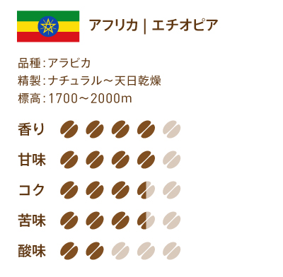 本来エチオピアは地域ごとの単品が主ですが、こちらは国内複数産地から取り寄せ、秘密の配合レシピを開発した、らしいです。女王の名にふさわしい華やかで上品なモカフレーバーをご賞味ください。