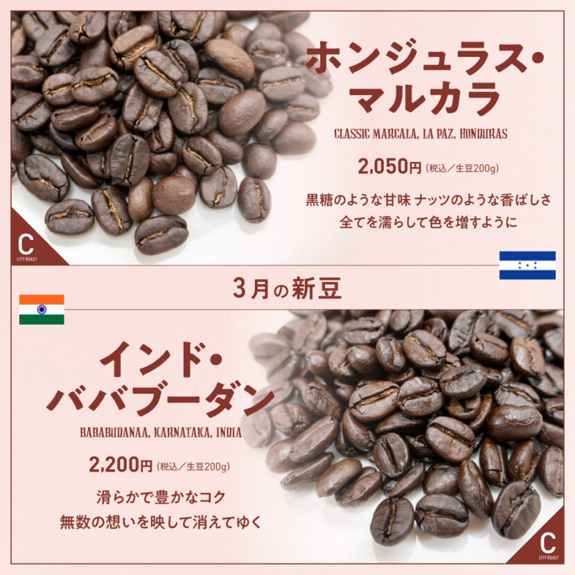3月の新豆 ホンジュラス・マルカラ/インド・ババブーダン